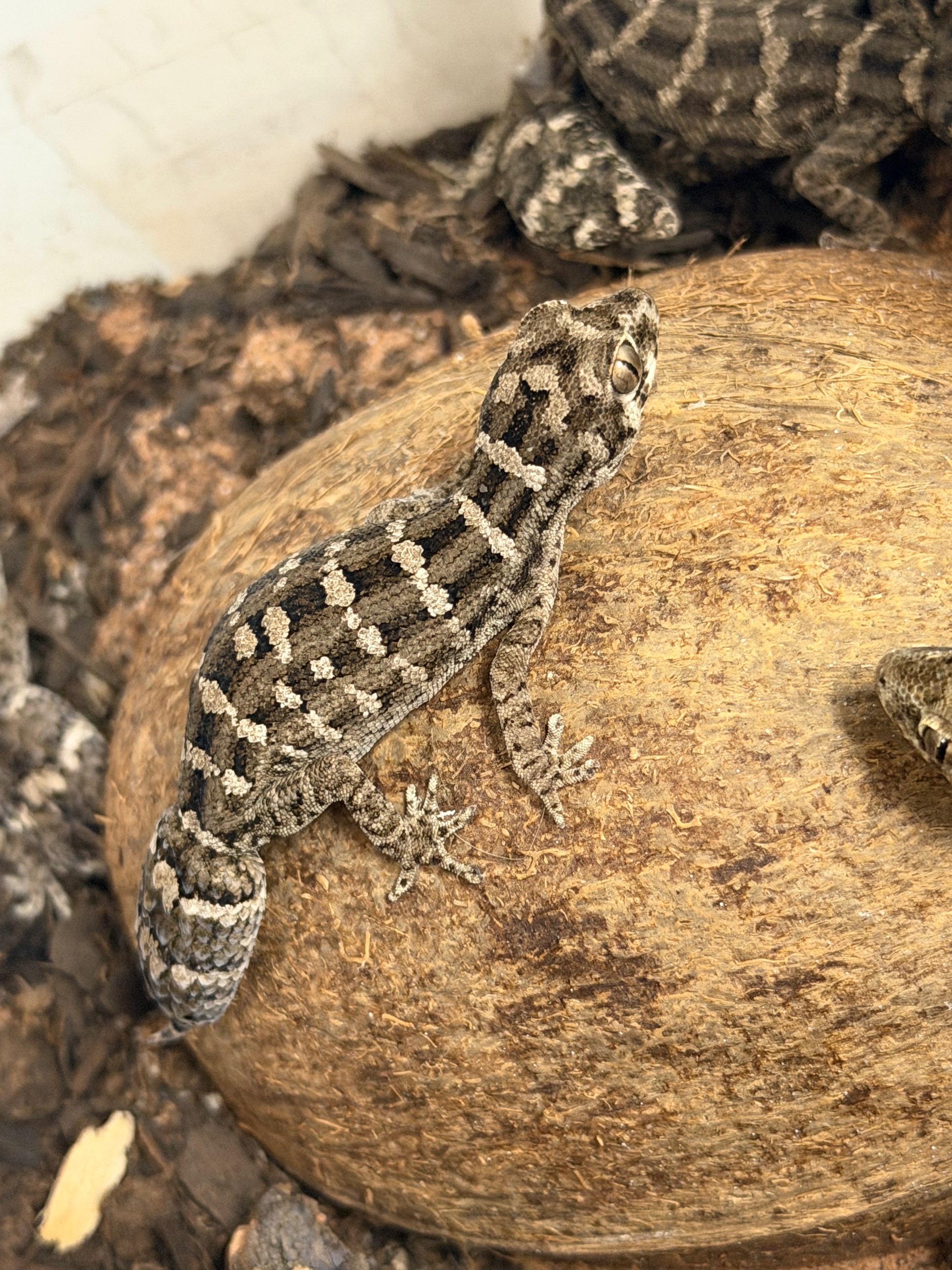 Please Note: Images are representative only. Viper Geckos display a range of grey, chocolate, and tan banding that can shift slightly based on their mood and light levels. Unless marked "Exact Animal," you will receive a healthy adult specimen.